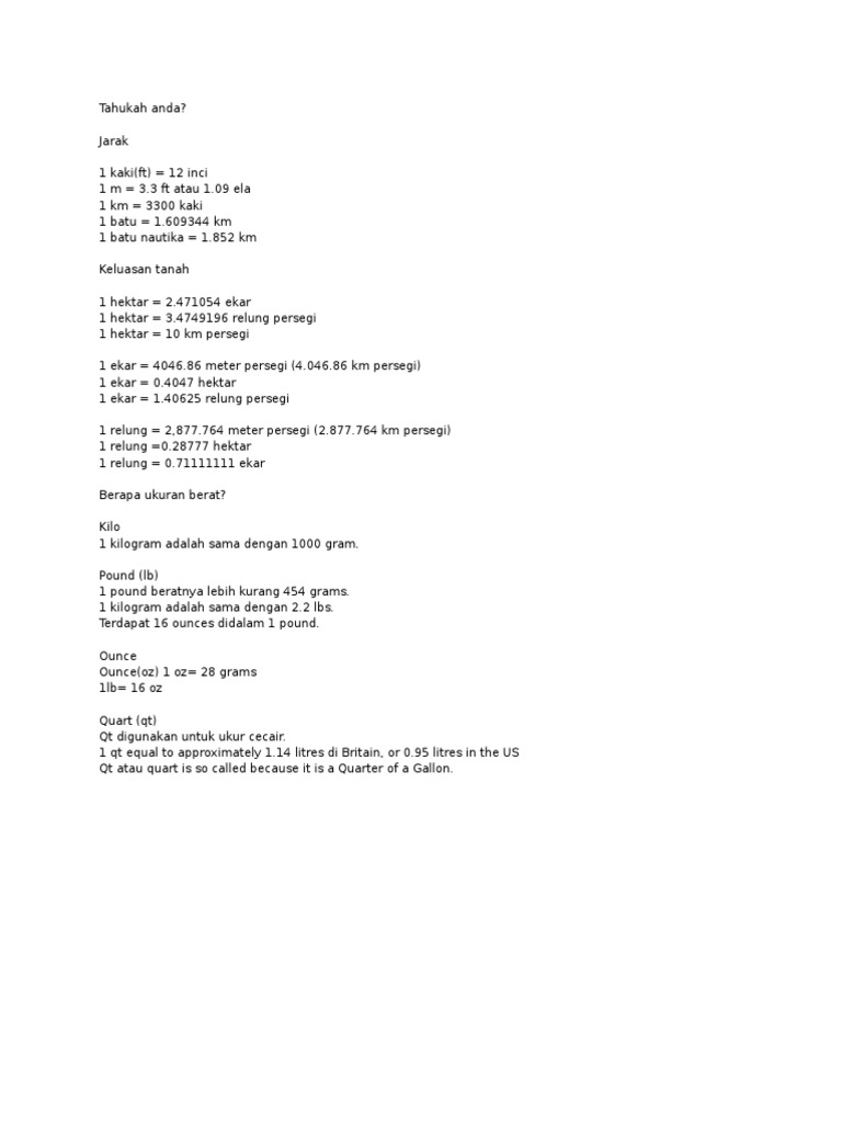 Penukaran Sistem Ukuran