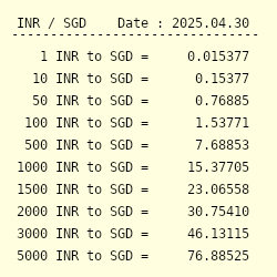 Inr To Sgd Exchange Rate Indian Rupee To Singapore Dollar Conversion