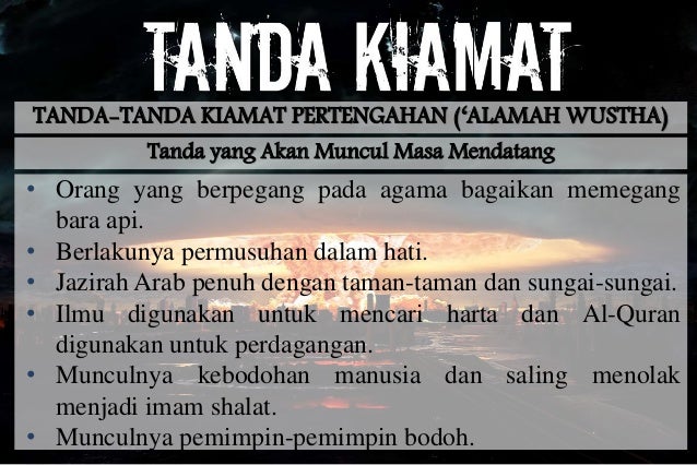 Tanda tanda akhir zaman dalam al quran. Tanda tanda akhir zaman yang kelima adalah turunnya nabi isa as dari langit. Hal ini disebutkan dalam hadits berikut akan ada di akhir zaman satu kaum yang menyemir rambut mereka dengan warna hitam bagaikan dada burung merpati mereka tidak akan pernah mencium harumnya surga hr. Tentunya kiamat sangat lah menakutkan dan mengerikan maka dari itu mari kita berdoa semoga saja kita tidak mengalami kiamat kubro. Pembunuhan sudah ada sejak zaman qobil dan habil jadi memang kasus pembunuhan sudah ada sejak zaman nabi adam dan kasus pembunuhan jumlahnya semakin banyak.